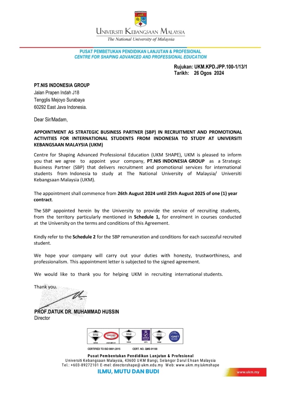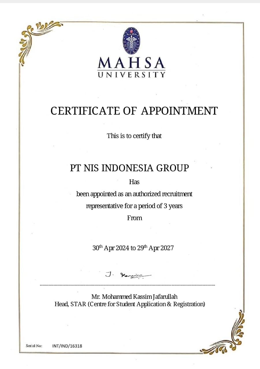 .....Sangat senang bisa di bantu NIS dalam proses administrasi di awal2 ketika mau masuk universiti, dari urusan visa, menemani urusan administrasi di kampus, sampai komunikasi langsung dgn pihak univ semua di bantu NIS